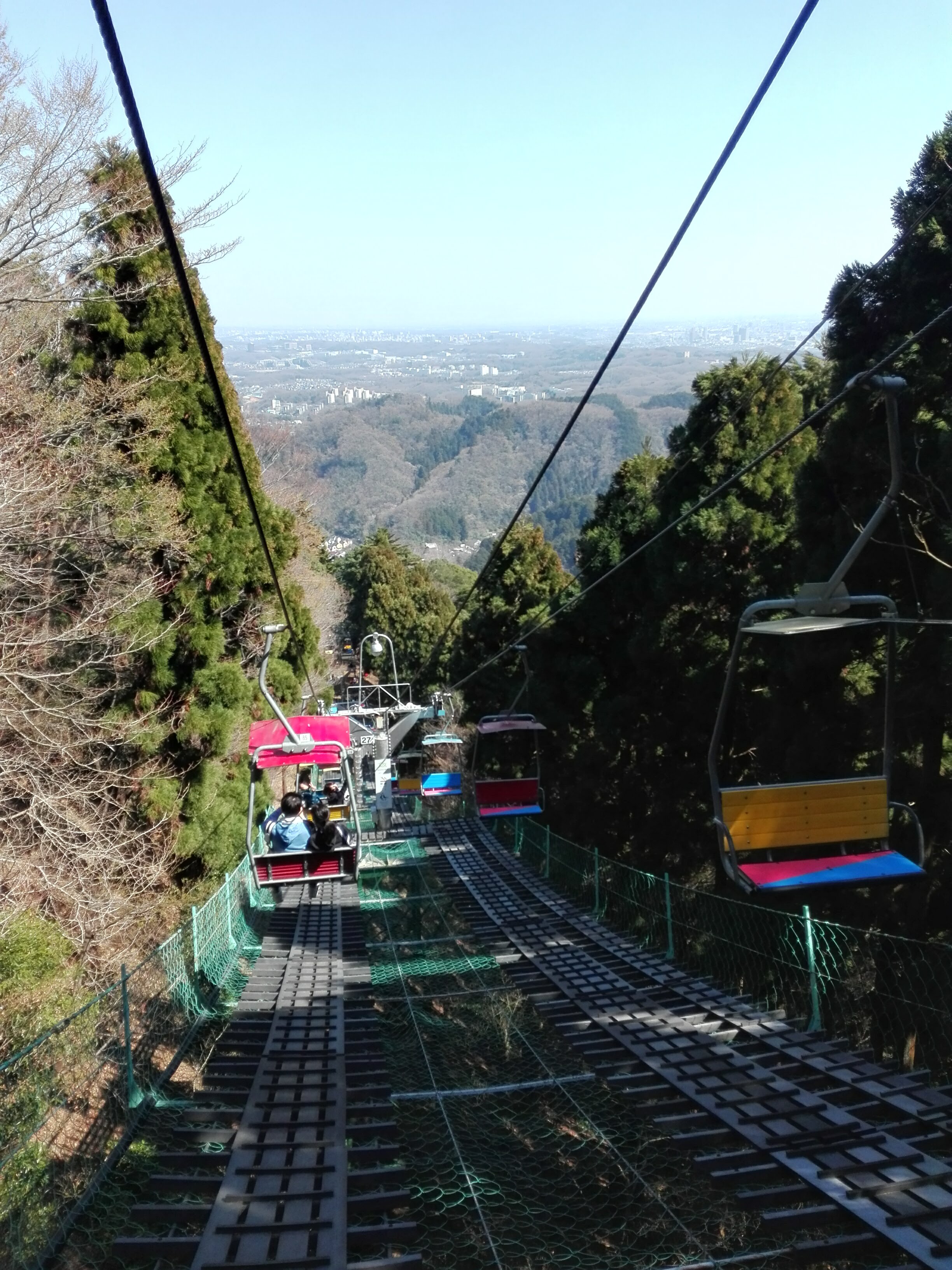 After having lunch at the summit, we walked along route No. 4 on the return and got on 2-seat chair lift to go down. Actually, a chair lift looks like the one in ski resorts, which was so fun and I felt a nice breezing in deep forest. I strongly recommend you to get on, in particular, on the day with mild climate.