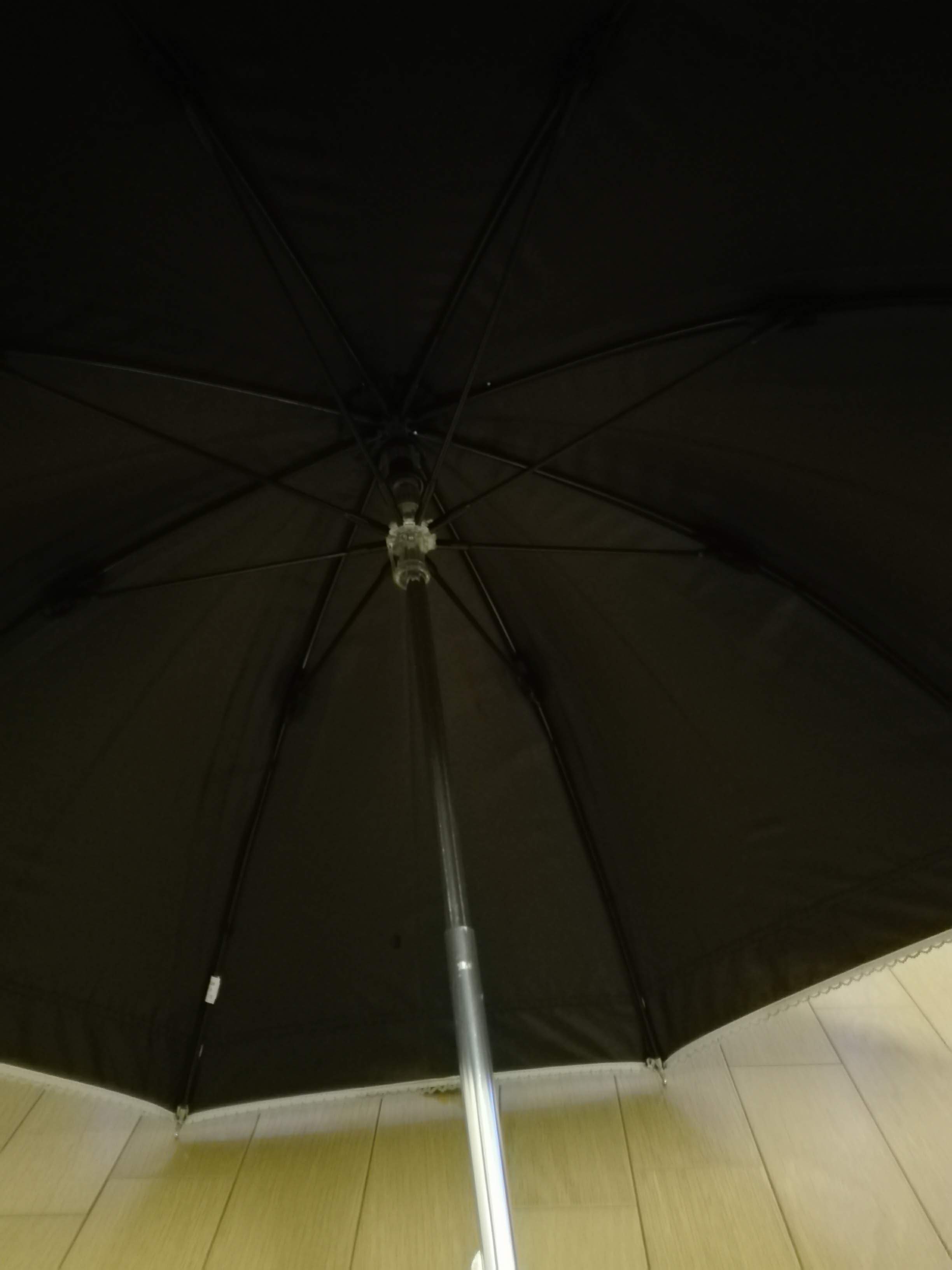 Actually, I really hate “disgusting” summer season in Japan and I can’t stand its terrible heat and humidity as well as strong sunshine. Summer season in this country seems hotter and got longer year by year, I am always worrying how I can spend the horrible season more comfortablely. As I told you before, I had suffered from chronic eczema for a long time and it will get worst in summer season due to strong sunshine and my sweat. I would like to avoid both of them, however I don’t want to put sun protect cream on my face and body, because it leads itchiness more. You may think I should wear a hat, but it makes my head sweaty quickly in this humid climate, so it doesn’t work well. I really need something to block sunlight without touching my head skin directly. Then, one solution I found is to use a parasol, an umbrella for protection from strong sunlight. My parasol with a function of cutting ultraviolet rays has worked well so far. When I go out without it at daytime, my body gets hot and I sweat very soon so that I cannot let go with the parasol any longer.