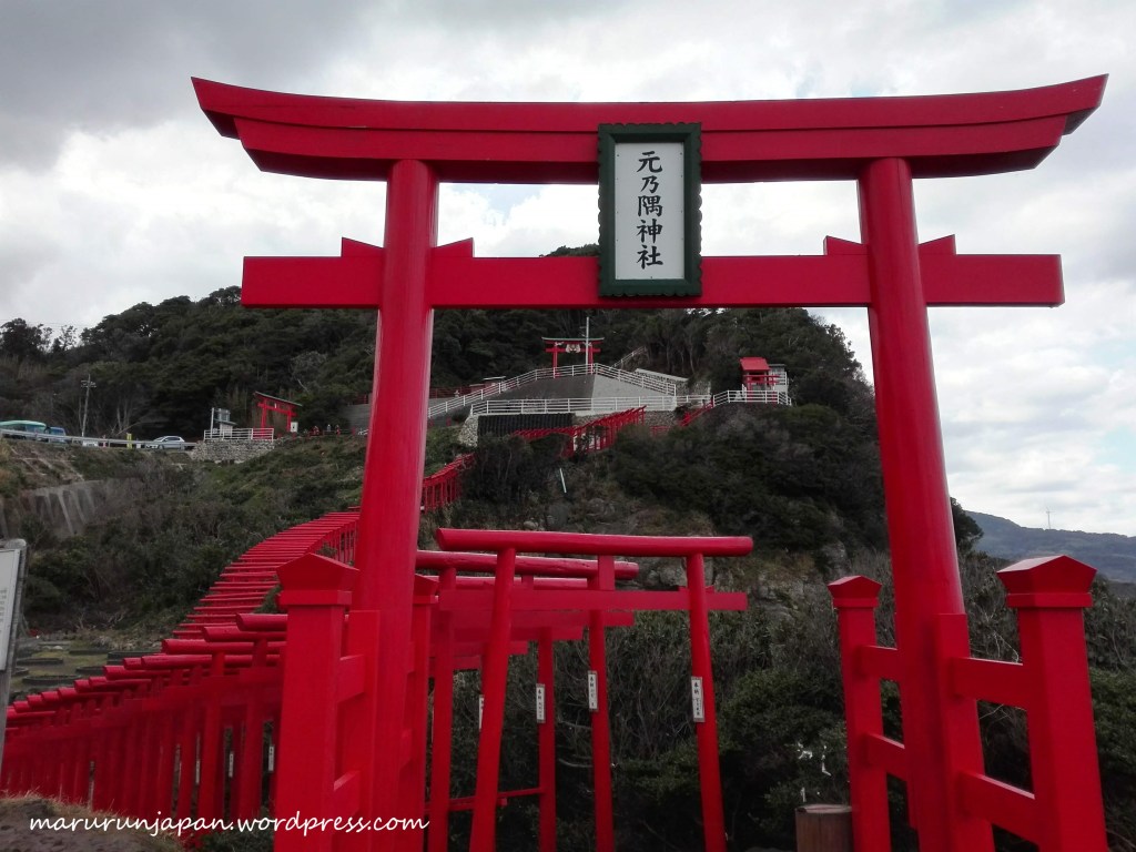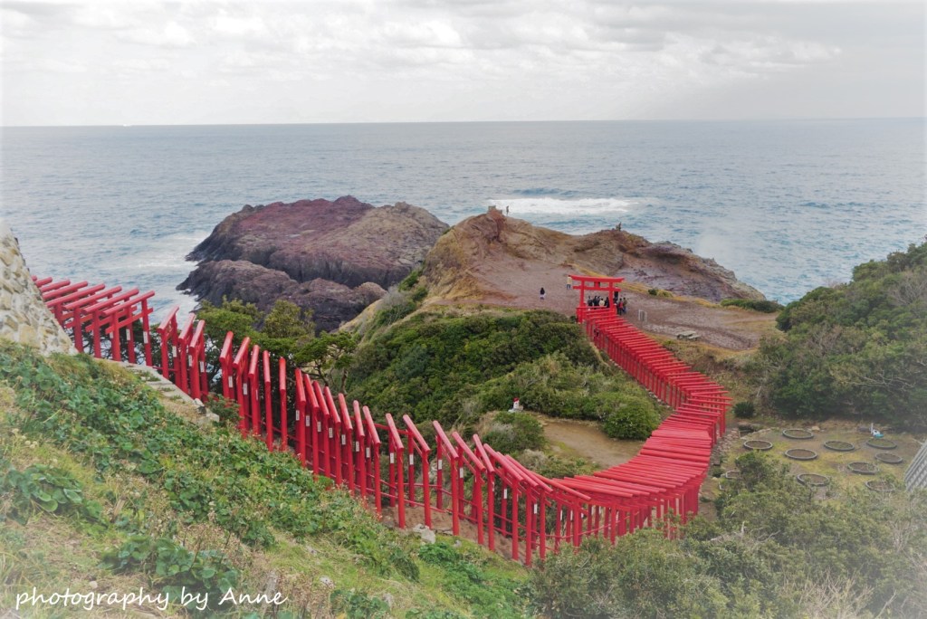 Besides, you can see the phenomenon of raising seawater high from a hole made naturally if you walk along the quay, which seemed like very dynamic nature attractions. Fushimi Inari Shrine in Kyoto is well-known for arrays of red torii gates, but Motonosumi shrine looks much wilder and is worthwhile visiting to feel nature gods.