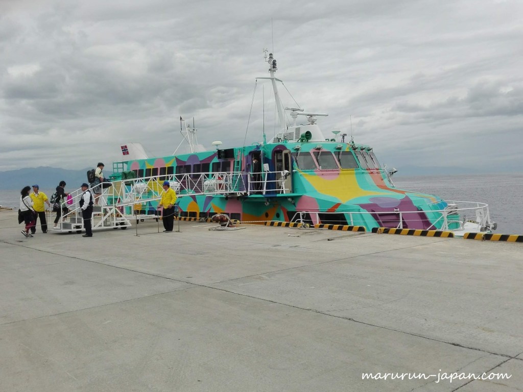 You can go there by large ship or jet ferry from “Takeshiba Sanbashi” in Tokyo or by a small air place from “Chofu Airport” at suburb city in Tokyo. We chose a jet ferryl which is faster than a large passenger ship and can reach there for 2 hours on one-way this time. (If you use a large ship, you will leave the port around 11:00 pm and reach the island at the next early morning around 6:00 am. It takes long hours, but the cost is cheaper than any other else. If you use a small air place, you can reach there in 25 minutes! And you can have a day trip from Tokyo.)