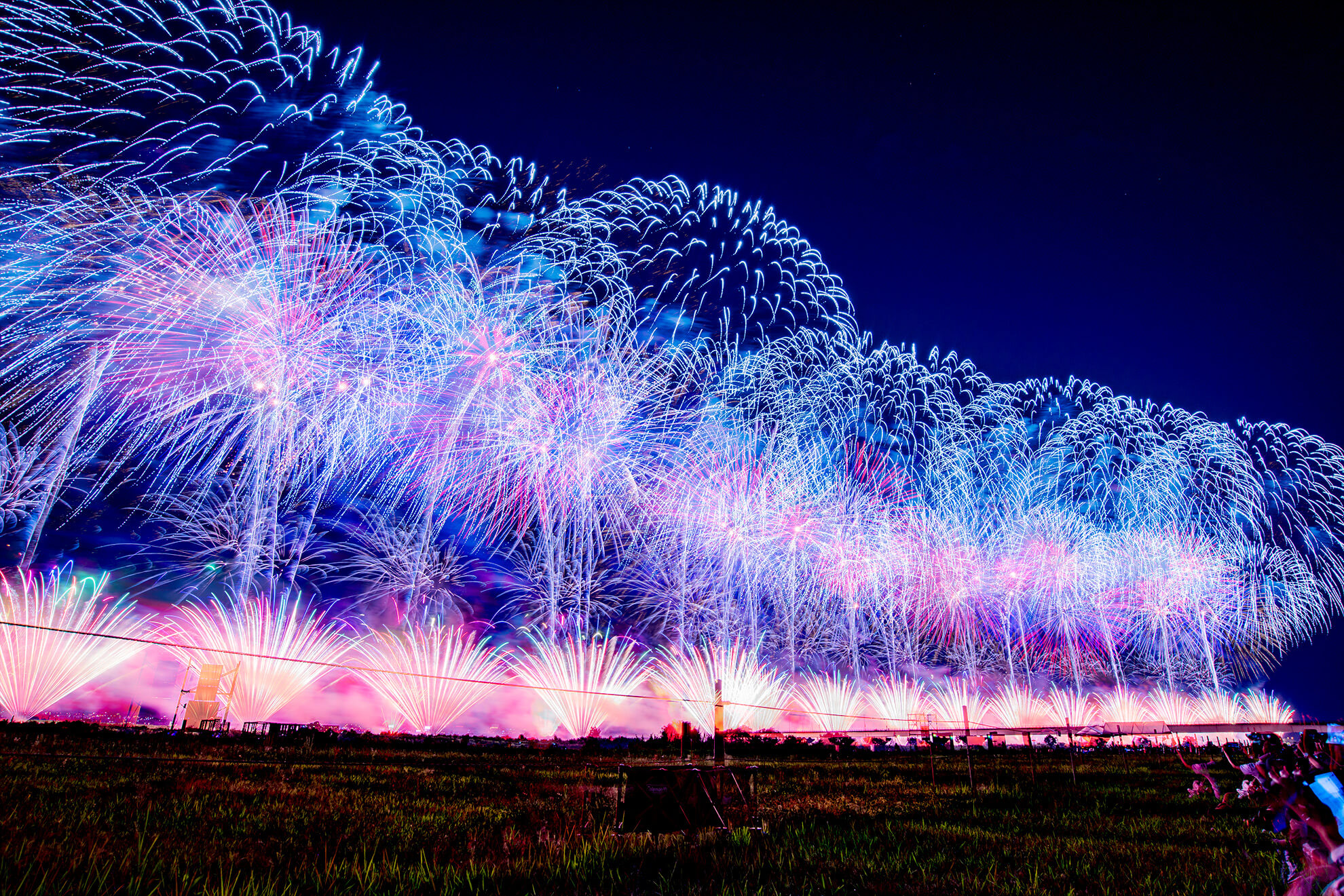 I have experienced to see Nagaoka fireworks twice in the past with my friends when Aug 2nd and 3rd was on weekend. (The fireworks festival is held along the riverbed of Shinano River on Aug 2nd and 3rd every year although these 2 days are on weekdays.) As it is extremely famous fireworks festival among people, I heard that the number of visitors always reach over a million for 2 days each year. Of course, pre-booking seats on-site is also very competitive and hard to secure. If you are residents of this area, it is not impossible to see by sitting on the riverside for free, but it is mandatory for visitors coming from other areas like us to secure the seats on-site beforehand. Fortunately, we succeeded to book our seats for both times, box seats on the riverbed for the 1st year and tables and chair at the sports arena near on-site for the 2nd year.