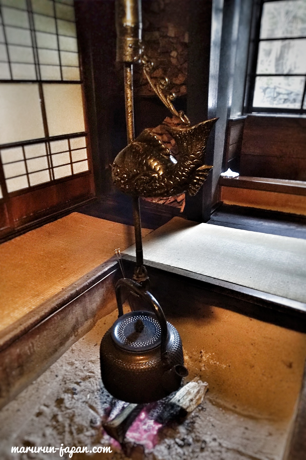 The inn opened 140 years ago and its buildings are registered as National Tangible Cultural Properties which keeps the traditional Japanese housing method. When you enter the building, you can find a massive one-panel wooden brazier at the center. There is also a room with an old hearth on the left side where you can enjoy Japanese green tea. Our room was not in the main building but in the new building,(however, the building was built 80 years ago even though it is said “new”! ).